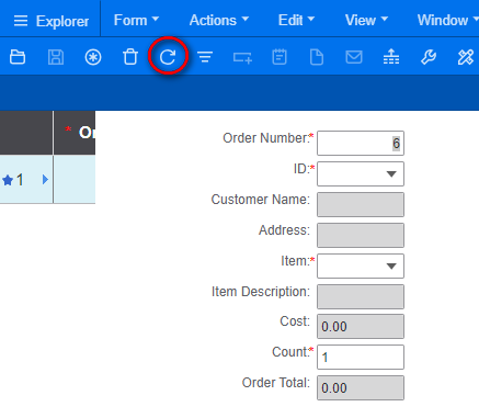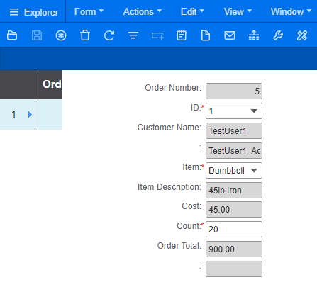 Verify that our DerOrderTotal calculation is working properly. Change the Item or the Count field and save the record. Upon save, you will see the Order Total field will update accordingly.