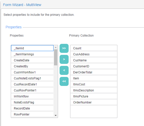 Click Ok. Notice now in the Property Names column, that our selected properties are now prefixed with Cus. Click Finish to create the properties on the Orders IDO.