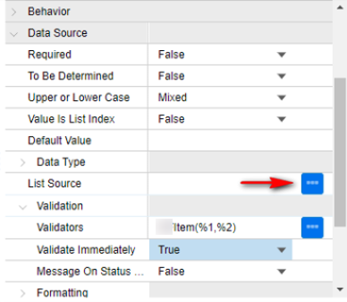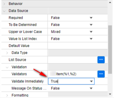 Click Ok until you get back to the Global Objects modal. In the Properties panel, under the Data Source section, set the Validate Immediately field to True.