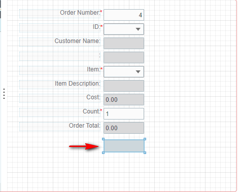 Switch back to the Orders form in the Web Designer. Select the ItmsPictureStatic component and delete it by pressing the Delete key.