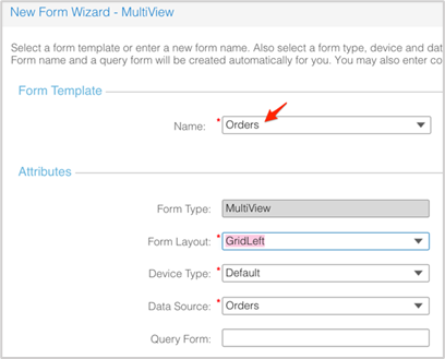 Click Ok. Once the New Form Wizard launches, for the Name field, select our existing Orders form name. Keep the default Data Source of Orders and click Next.
