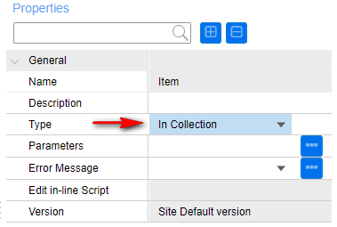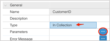 Set the Type to In Collection, and in the Parameters field, click the ellipsis.
