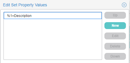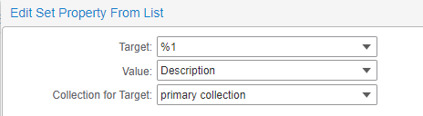 For the Target field, type: %1. Set the Value field to Description from the drop list and keep the Collection for Target set to primary collection. Click Ok.