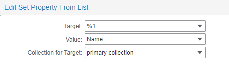 For the Target field, type: %1. Set the Value field to Name from the drop list and keep the Collection for Target set to primary collection. Click Ok.