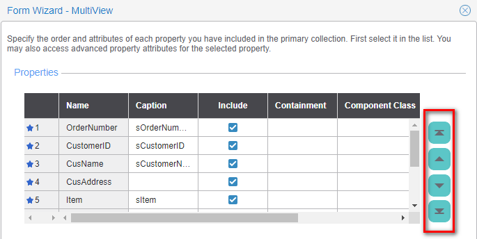 Using the arrow buttons on the right, reorder the properties so that they appear in the order below:
