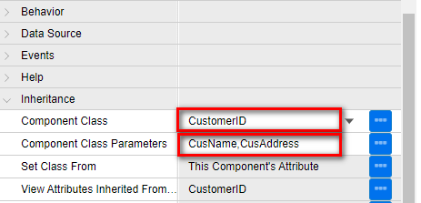 Expand the Inheritance section and set the Component Class field to CustomerID. In the Component Class Parameters field, type: CusName, CusAddress.