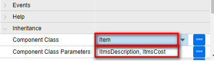 In the Component Class Parameters field, type: ItmsDescription, ItmsCost.