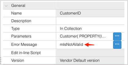 Click Ok until you get back to the Global Objects window. For the Error Message field, select the standard error message mIsNotAValid.