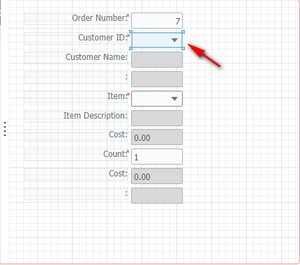 Next, let’s repeat this process for the CustomerID field. Select the CustomerIDCombobox component.