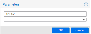 Once the Parameters modal opens, type: %1,%2 into the first field and then click Ok.