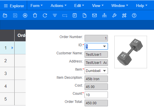 Switch back to the Runtime Mode tab and reopen the Orders form, and press the Refresh button or F4 to query the data. Our Picture property now displays the Item’s image. Select a different record on the Orders form, and you will see that the picture will update each time you switch records.