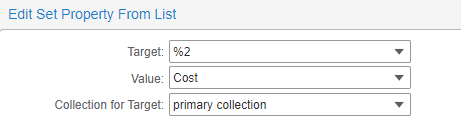 For the Target field, type: %2. Set the Value field to Cost from the drop list and keep the Collection for Target set to primary collection.