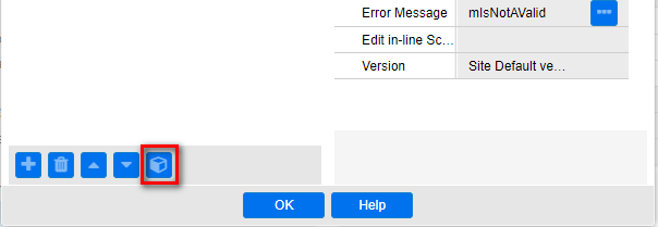 On the Validator modal, click on the CustomerID validator. Then click on the Parameters icon on the bottom.