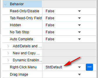 Scroll down and set the Right-Click Menu field to StdDetailsAddFind.