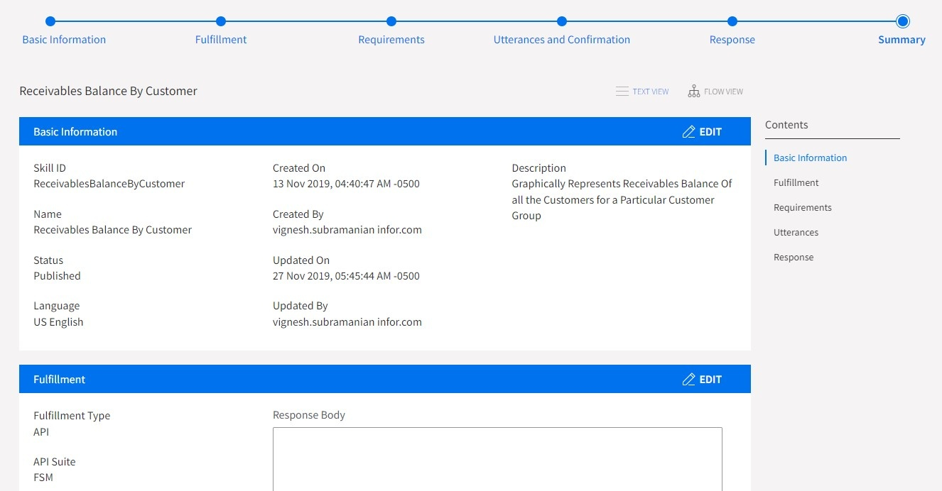 By adding a skill to the Infor Digital Assistant to retrieve the balance for a customer your employees can access the information quickly via chat or voice on desktop or mobile.