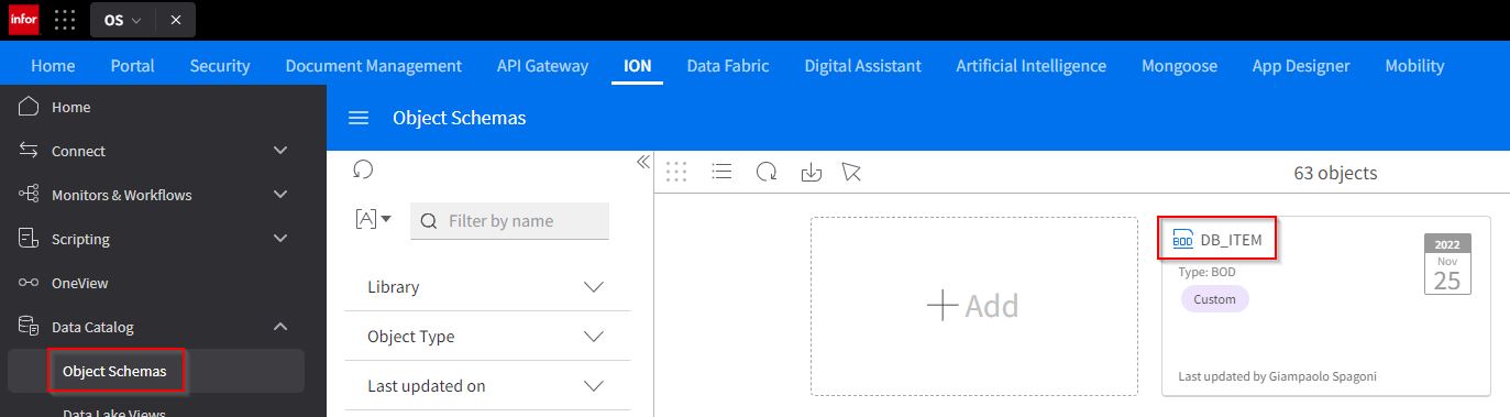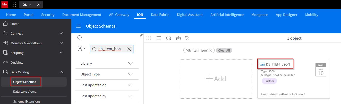 Go to the Data Catalog to see the newly created Object Schema .