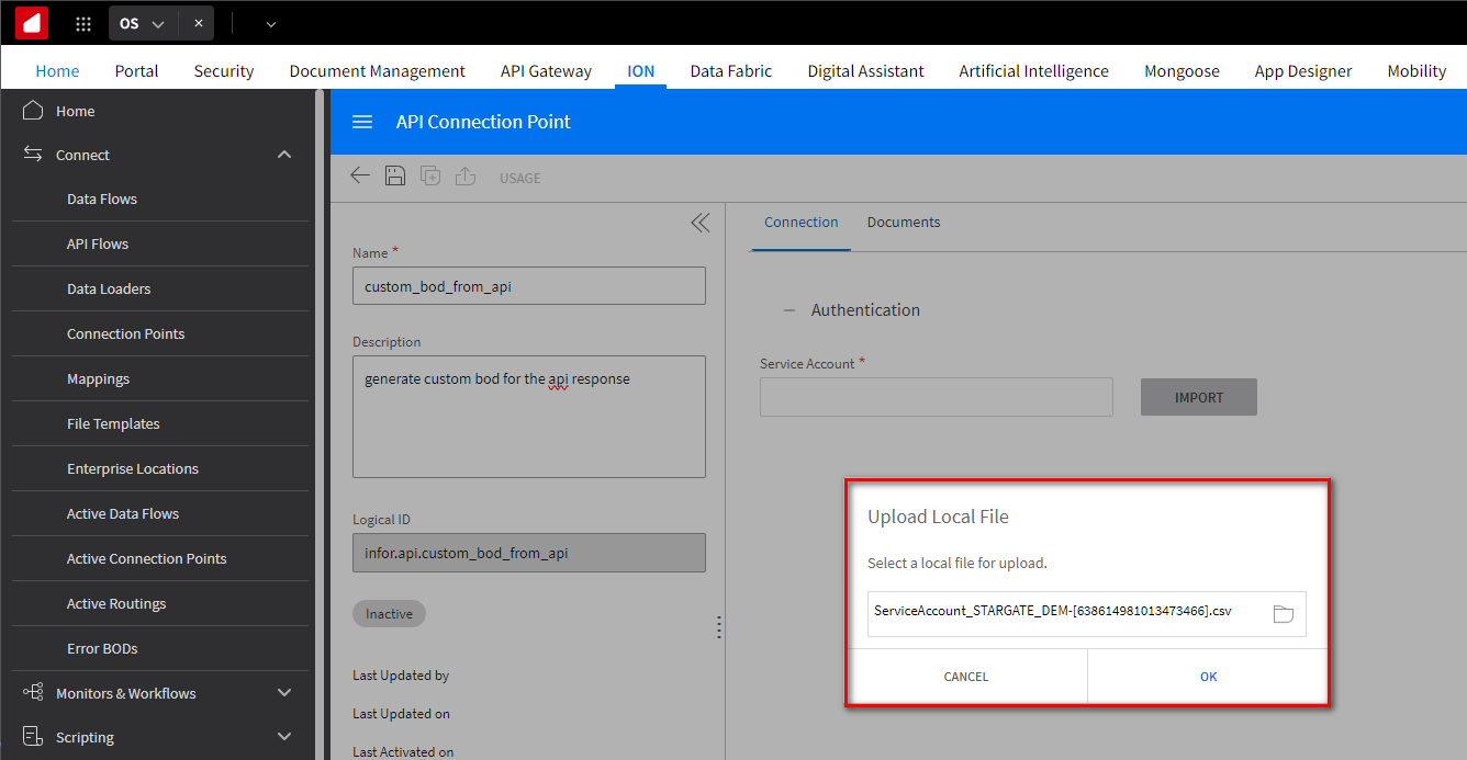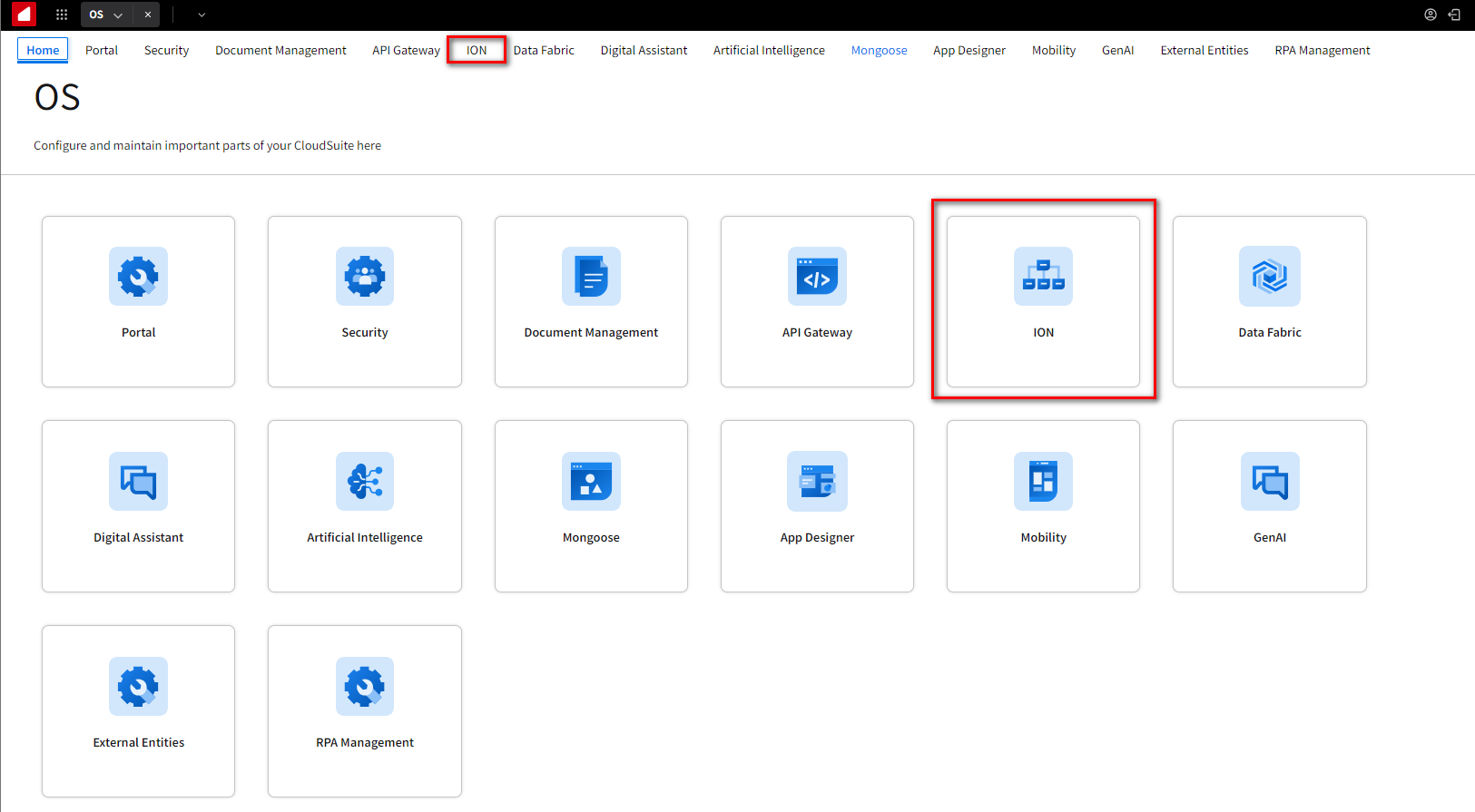 Login to Infor OS Portal. After you have logged in, click the ION tab or select the ION security card located on the main page.
