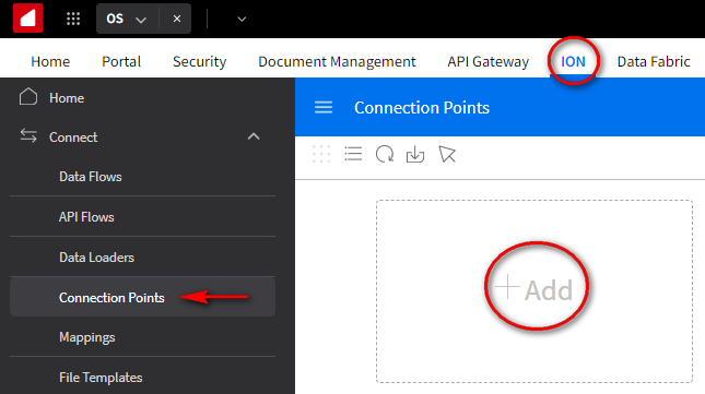 From the ION page, expand Connect and click on the Connection Points option. Click the + Add .
