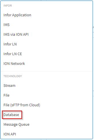 From the list, select the option Database.