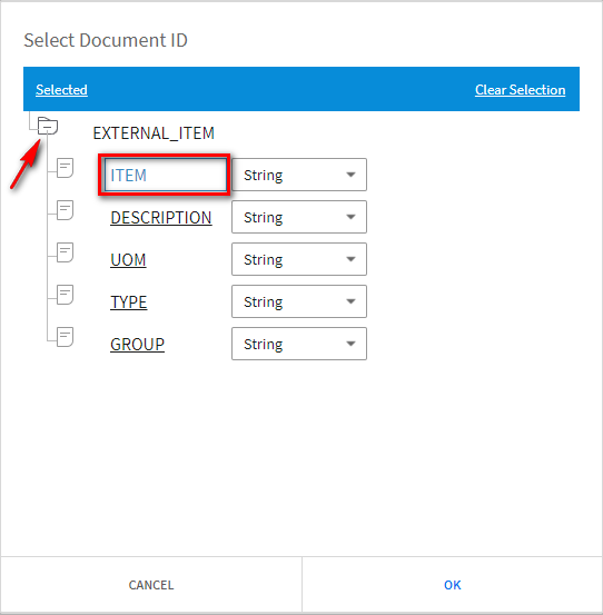Expand EXTERNAL_ITEM folder and select ITEM , click Ok .