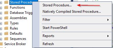Right-click and select Stored Procedure ...