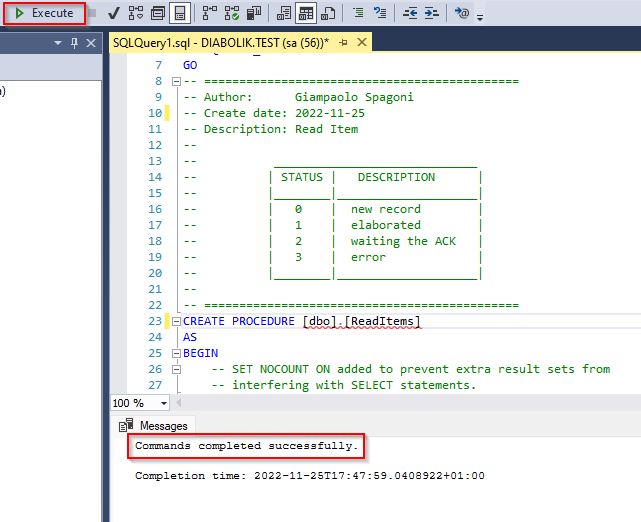 Click the Execute button to create the Stored Procedure.