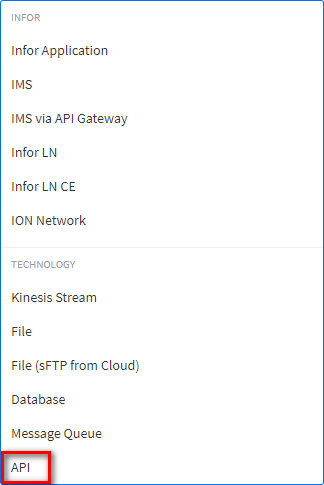 From the list, select the option API