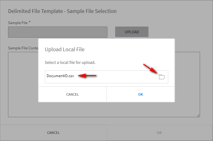 Click on the browse folder icon, select the DocumentID.csv file you just created. Click Ok .